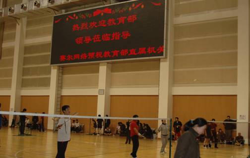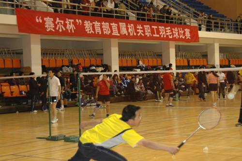 由教育部直屬機(jī)關(guān)工會(huì)主辦、教育部科技發(fā)展中心承辦、賽爾網(wǎng)絡(luò)有限公司協(xié)辦的“2007年‘賽爾杯’教育部直屬機(jī)關(guān)職工羽毛球比賽”于11月14日在北京郵電大學(xué)羽毛球館正式開球比賽。來自教育部機(jī)關(guān)、直屬單位的31個(gè)代表隊(duì),以及20多位司局長(zhǎng)參加比賽。本屆比賽持續(xù)三天,將在16日進(jìn)行決賽與頒獎(jiǎng)。