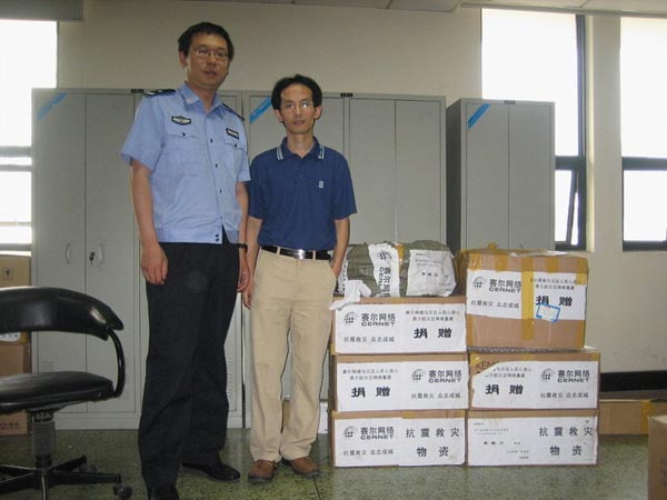 地震發(fā)生后,賽爾網(wǎng)絡(luò)積極參與抗震救災(zāi)工作,5月19日,在與公安部溝通中得知戰(zhàn)斗在抗災(zāi)第一線的成都市公安局急缺公安專(zhuān)用通信設(shè)備,公司緊急購(gòu)買(mǎi)了五套TK850常規(guī)轉(zhuǎn)信臺(tái)設(shè)備發(fā)往成都市公安局,并委托四川分公司完成捐贈(zèng)設(shè)備的交付工作。