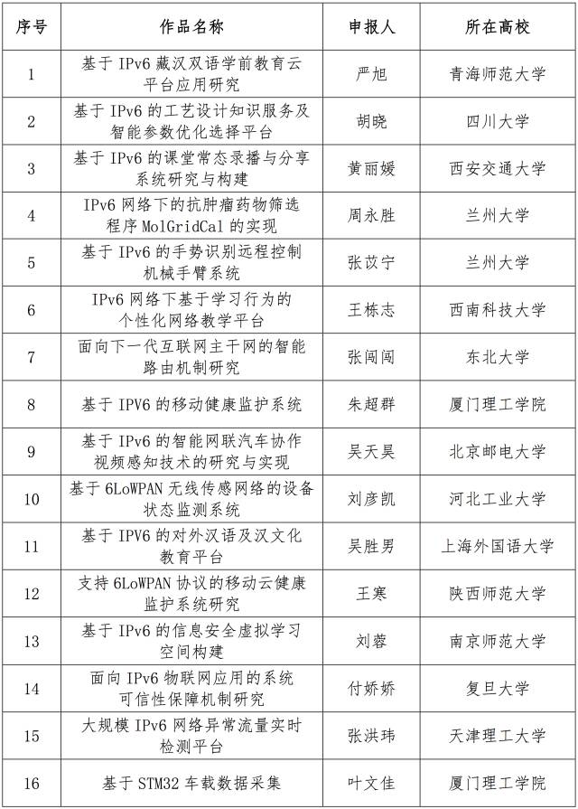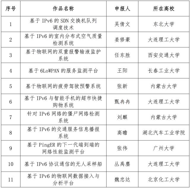 為推動我國在IPv6為核心的下一代互聯(lián)網(wǎng)的技術(shù)創(chuàng)新與普及,在教育部科技發(fā)展中心的指導(dǎo)下,賽爾網(wǎng)絡(luò)有限公司自2015年起,每年出資2000萬元,面向全國高校舉辦下一代互聯(lián)網(wǎng)創(chuàng)新項目和"下一代互聯(lián)網(wǎng)技術(shù)創(chuàng)新大賽",鼓勵扶持以大學(xué)生為核心的下一代互聯(lián)網(wǎng)技術(shù)創(chuàng)新,以推動中國IPv6網(wǎng)絡(luò)技術(shù)的普及與發(fā)展。截止目前,已經(jīng)有100多個高校的300余個項目參加了前兩屆的角逐,參賽人數(shù)超過1500余人。本次大賽吸引了來自全國100余所高校的230余個項目參加了此次大賽,大賽評選出一等獎4項,二等獎12項。
