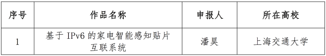 12月10日,面向全國大學(xué)生的下一代互聯(lián)網(wǎng)技術(shù)創(chuàng)新大賽在清華大學(xué)落幕,來自南京理工大學(xué)的IPv6校園環(huán)境中的多角色MANET的技術(shù)與應(yīng)用、電子科技大學(xué)的物聯(lián)網(wǎng)主機(jī)定位配置協(xié)議研究、和上海交通大學(xué)的基于IPv6的家電智能感知貼片互聯(lián)系統(tǒng)從230多個作品中脫穎而出,獲得大賽一等獎。