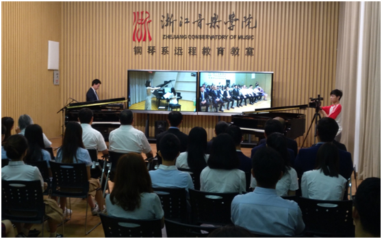 據(jù)介紹,這套鋼琴遠程教學系統(tǒng)由浙江省省長基金資助,浙江音樂學院與日本雅馬哈株式會社合作開發(fā),在傳統(tǒng)遠程教學技術(shù)基礎(chǔ)上,通過應用最先進的傳感技術(shù)和控制技術(shù),將鋼琴家在一臺鋼琴上的演繹,以同步無人演奏的方式,在全世界任何地點的另一臺鋼琴上精確、完美再現(xiàn)。該系統(tǒng)打破了地域、時間和空間的限制,使系統(tǒng)兩端遠隔萬里的師生近在咫尺、身如其境,將傳統(tǒng)的一對一鋼琴教學拓展為一對多、多對一、多對多,為全球音樂院校師生之間的相互交流、學習借鑒提供便利,使學院師生不出校門就可以接受世界頂尖藝術(shù)大家的精彩授課。