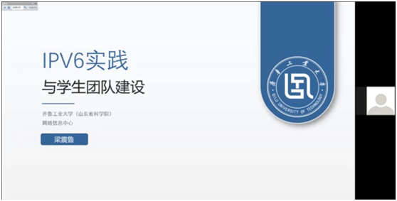 齊魯工業(yè)大學(xué)網(wǎng)絡(luò)信息中心副主任梁震魯,對(duì)科教融合背景下校園網(wǎng)絡(luò)建設(shè),網(wǎng)絡(luò)信息中心重新定位和團(tuán)隊(duì)建設(shè),校園IPv6建設(shè)現(xiàn)狀,學(xué)生團(tuán)隊(duì)參與IPv6的情況等進(jìn)行了闡述,并介紹了學(xué)校網(wǎng)站群建設(shè)和IPv6網(wǎng)絡(luò)安全研究等相關(guān)工作。