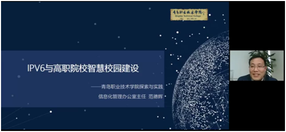 青島職業(yè)技術(shù)學(xué)院信息化管理辦公室主任范德輝,在報(bào)告中提出了IPv6與高職院校智慧校園建設(shè)應(yīng)從夯實(shí)基礎(chǔ),做優(yōu)環(huán)境,制定標(biāo)準(zhǔn),統(tǒng)一門戶,匯聚數(shù)據(jù),深化應(yīng)用方面開展。