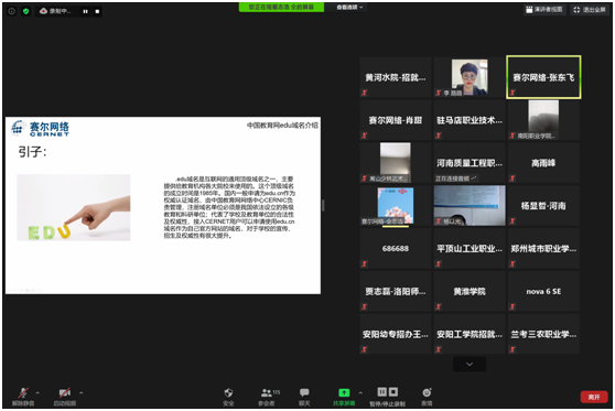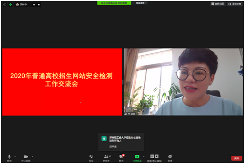 為使河南省各高校順利完成2020年高校招生網(wǎng)站安全檢測(cè)工作,河南分公司結(jié)合教育部學(xué)生司相關(guān)要求,于6月23日下午通過ZOOM視頻會(huì)議的形式舉行了“2020高校招生網(wǎng)站安全檢測(cè)工作交流會(huì)”,來自全省高校的120余名招生負(fù)責(zé)老師應(yīng)邀參加。