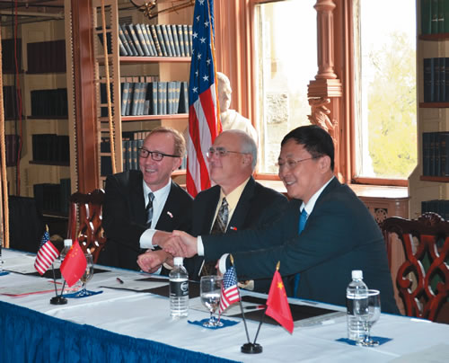 2011年11月4日,CERNET國家網(wǎng)絡(luò)中心主任吳建平教授在華盛頓喬治城大學(xué)與美國印第安納大學(xué)副校長BradWheeler、美國Internet2CEODaveLambert會(huì)面,共同慶祝中美學(xué)術(shù)網(wǎng)絡(luò)高速