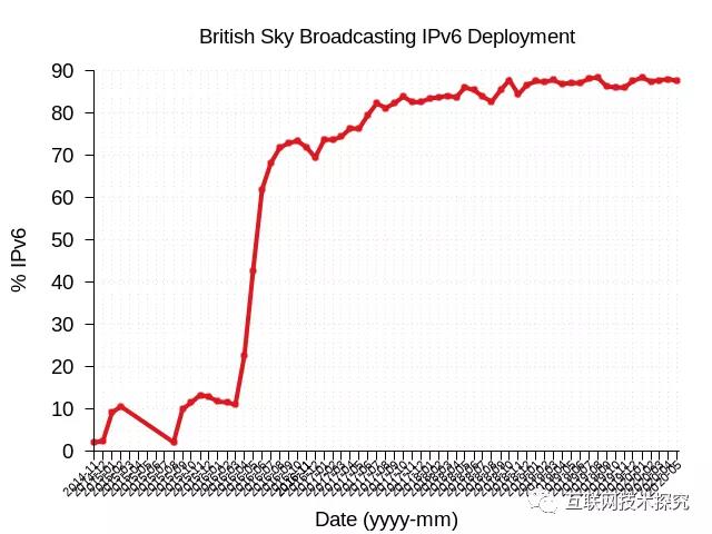 圖14 British Sky Broadcasting IPv6部署曲線圖 |